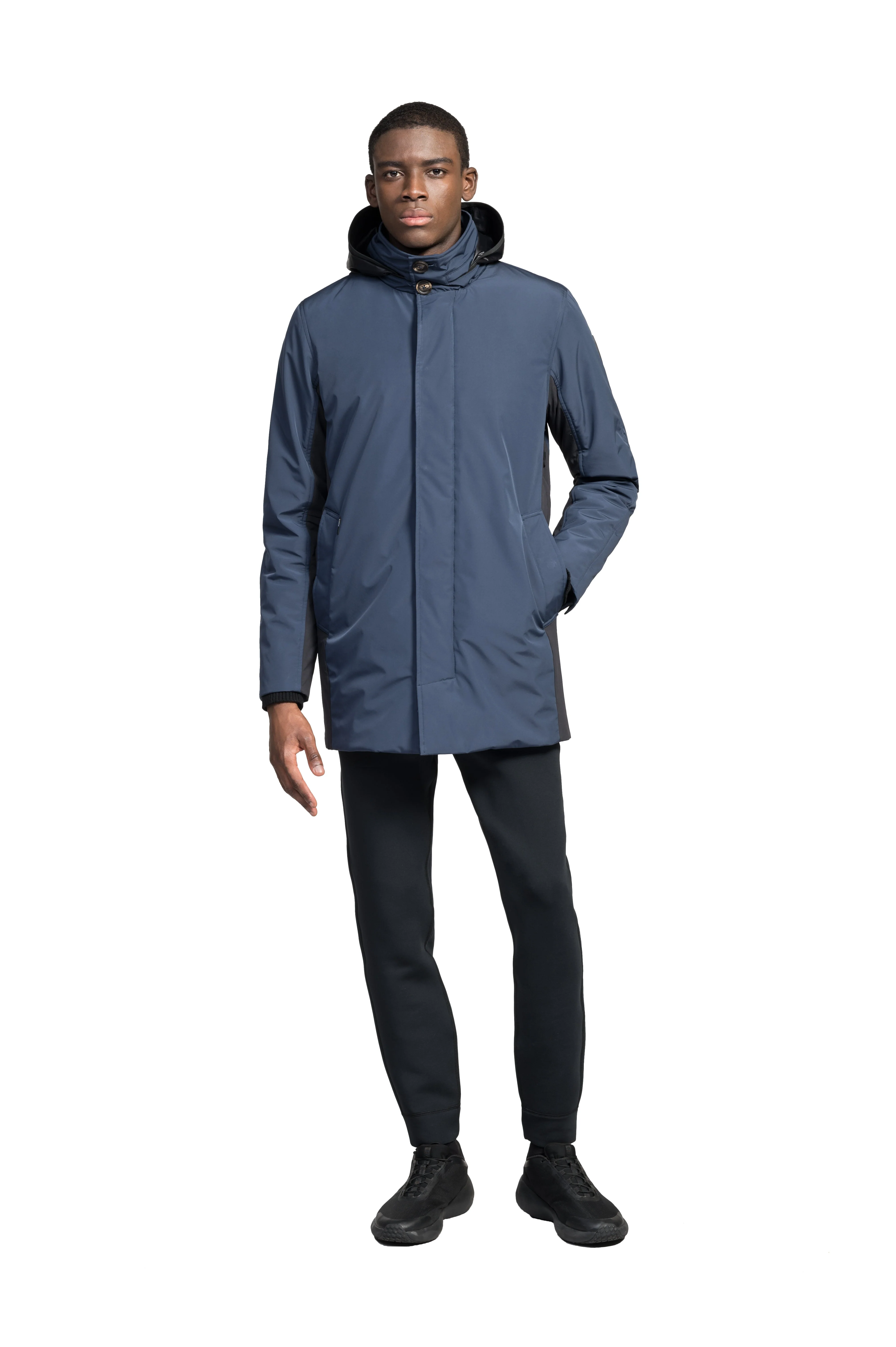 Experience superior protection and comfort with the Pike, featuring high-quality materials and functional design. The 3-ply Micro Denier fabrication at the torso and cire technical nylon taffeta with DWR coating at the hood provide exceptional protection against the elements. Plus, the Primaloft Gold Insulation Active+ ensures warmth and flexibility. The stand collar includes a tuckaway waterproof hood for added versatility, and the hidden 2-way branded zipper with snap closure wind flap ensures a snug and secure fit. The single welt pockets with magnetic closure at the waist and hidden snap placket at cuffs offer additional functionality.