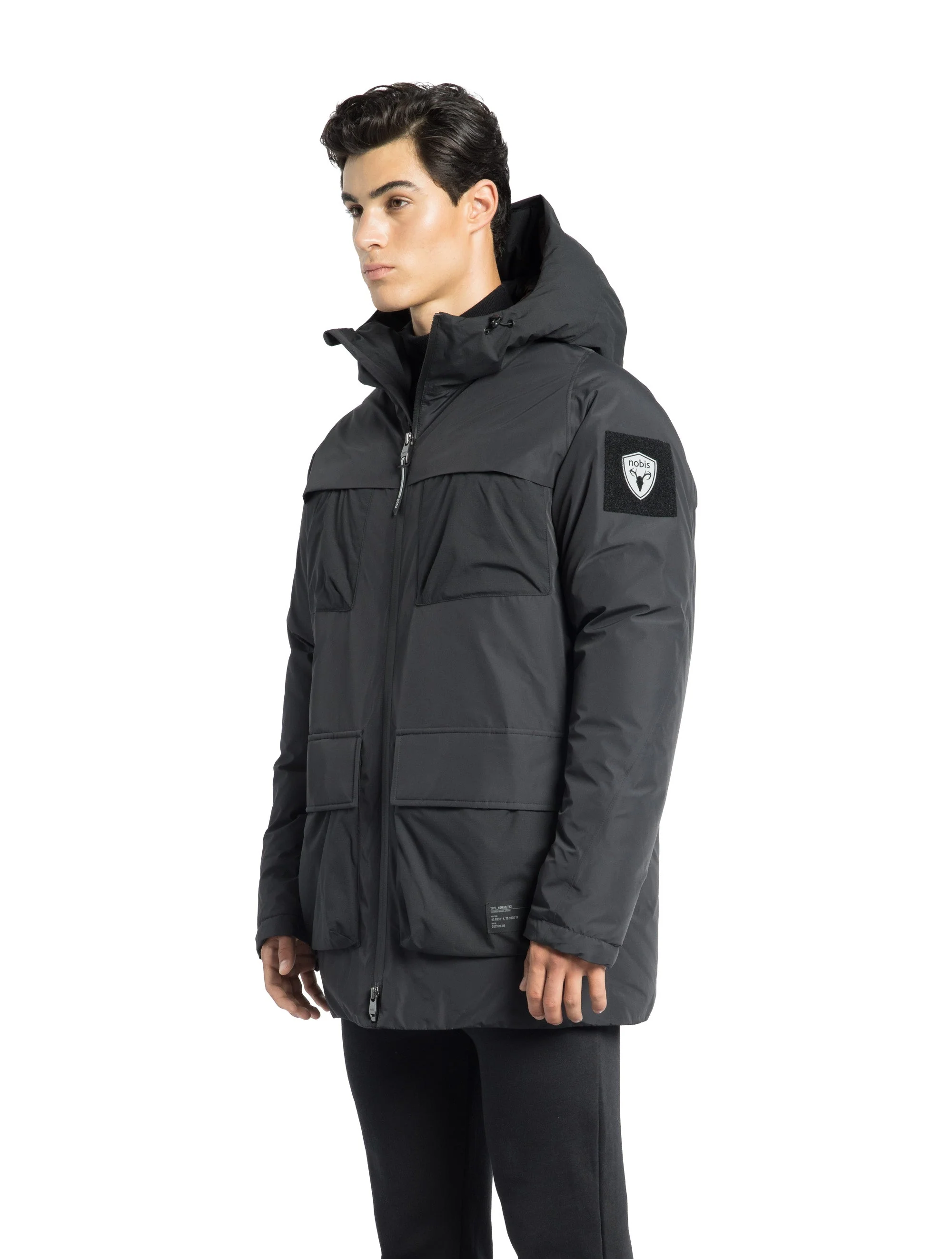 The Ronin is designed to keep you stylish and protected in all climates. It features premium Canadian origin White Duck Down insulation for exceptional warmth, and the down-filled hood with adjustable toggles provides customizable protection from the elements. Built with utility in mind, The Ronin features magnetic closure chest and waist pockets, offering ample storage for your essentials. The hidden side-entry zipper pockets at the waist provide additional secure storage options. The Ronin features a hidden adjustable waist drawcord for a personalized fit and added comfort. Additionally, this parka is machine washable for easy care.